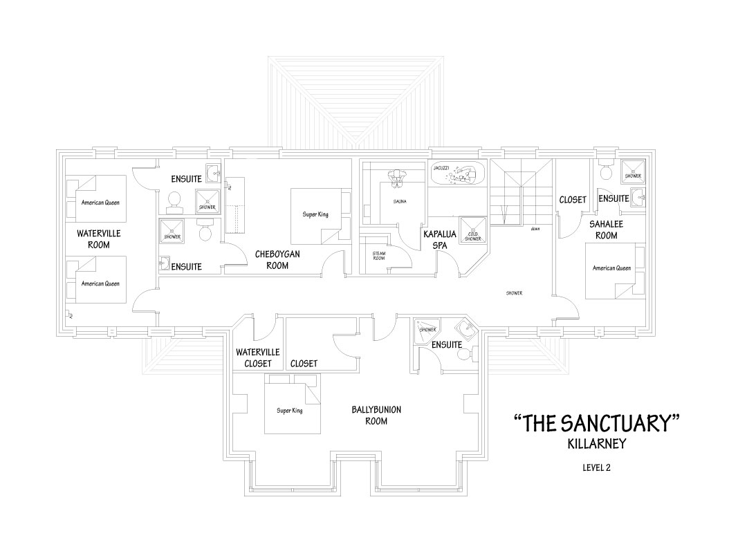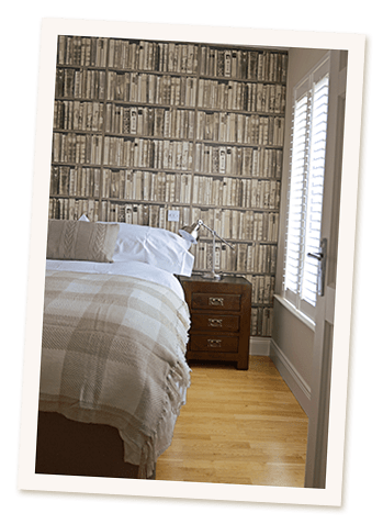 This room has a large built-in closet and en suite bathroom complete with toilet and shower. The inspiration for this room was Donny's father's study in Mullingar.