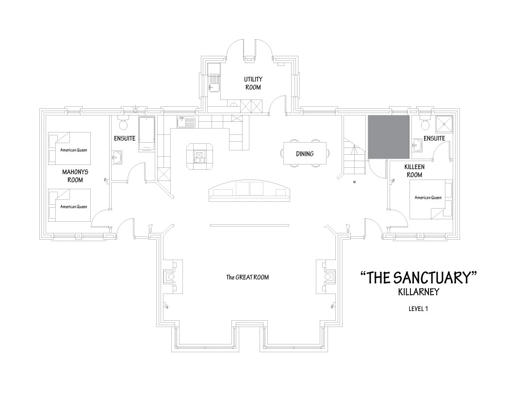 Ballybunion boasts a large open floor plan with 1 Super King memory foam bed, a spacious sitting area furnished with a 39" Smart LED TV. The en suite bathroom is complete with toilet and a power shower.